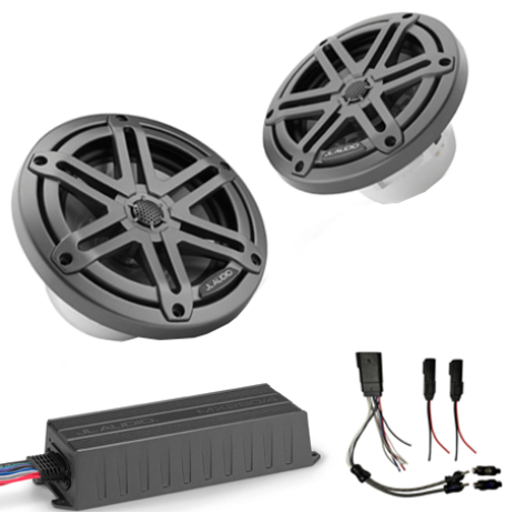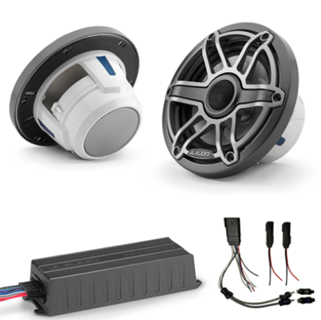 1 x MotoMarine’s Seadoo Plug and Play Audio Harness 1 x JL Audio MX 280/4 Amp 2 x JL Audio M6-650X-S 2 x RCA Y-Adaptor This complete plug and play package for Seadoo, connects right up without the need to cut any wiring. S...